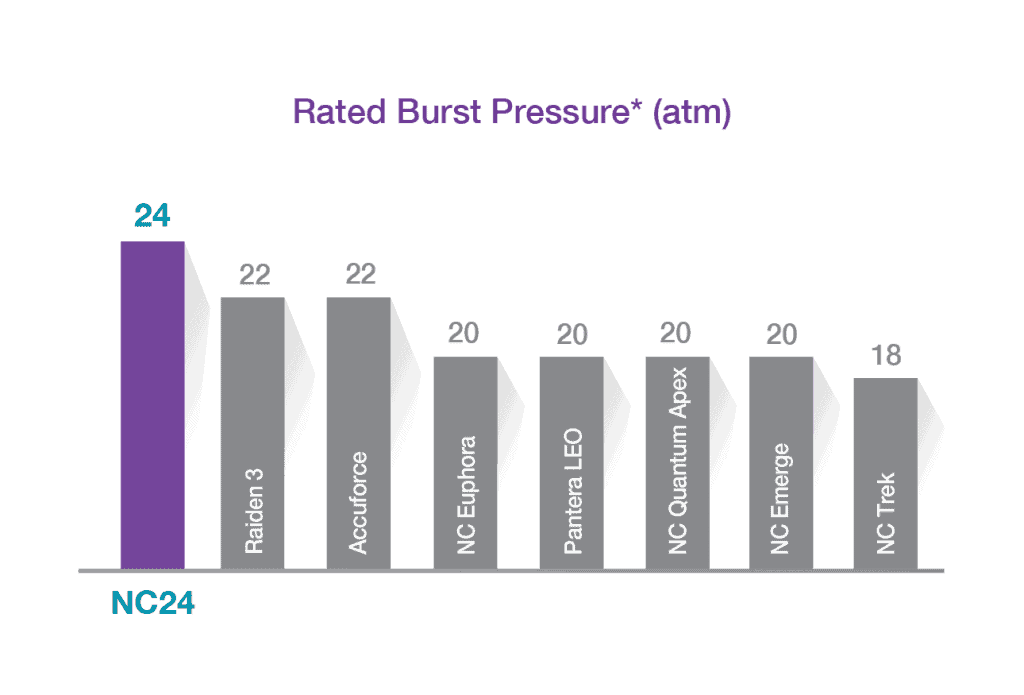 *Data on in-house bench test data on Ø 3.0 mm balloons